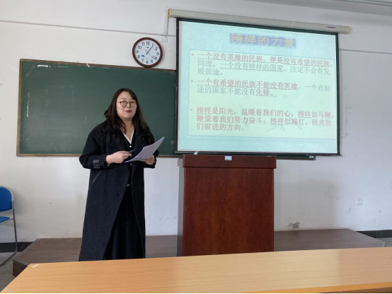 思政教研部主任邵春凤老师首先向全体思政课教师传达了省教育厅关于做好2021年度春季学期“开学第一课”等相关工作提示的函》的通知,并以《榜样的力量》为题进行备课指导。思政部周启新和王琦两位老师为全体思政课专职教师做了示范课堂。