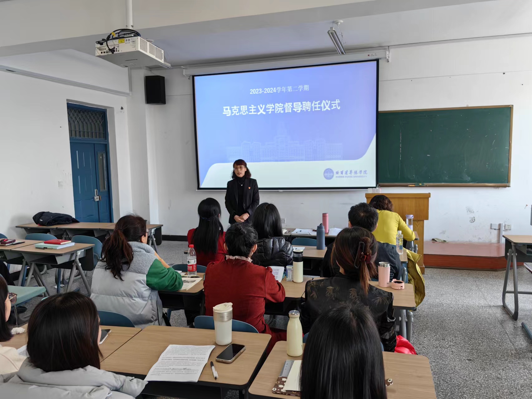 为进一步加强对pp电子官方网站教学质量的督导,持续提升思想政治理论课的教学质量,2024年2月28日,pp电子官方网站在第四教学楼412举办院级督导聘任仪式,由院长邵春凤教授主持,学院全体教师参会。