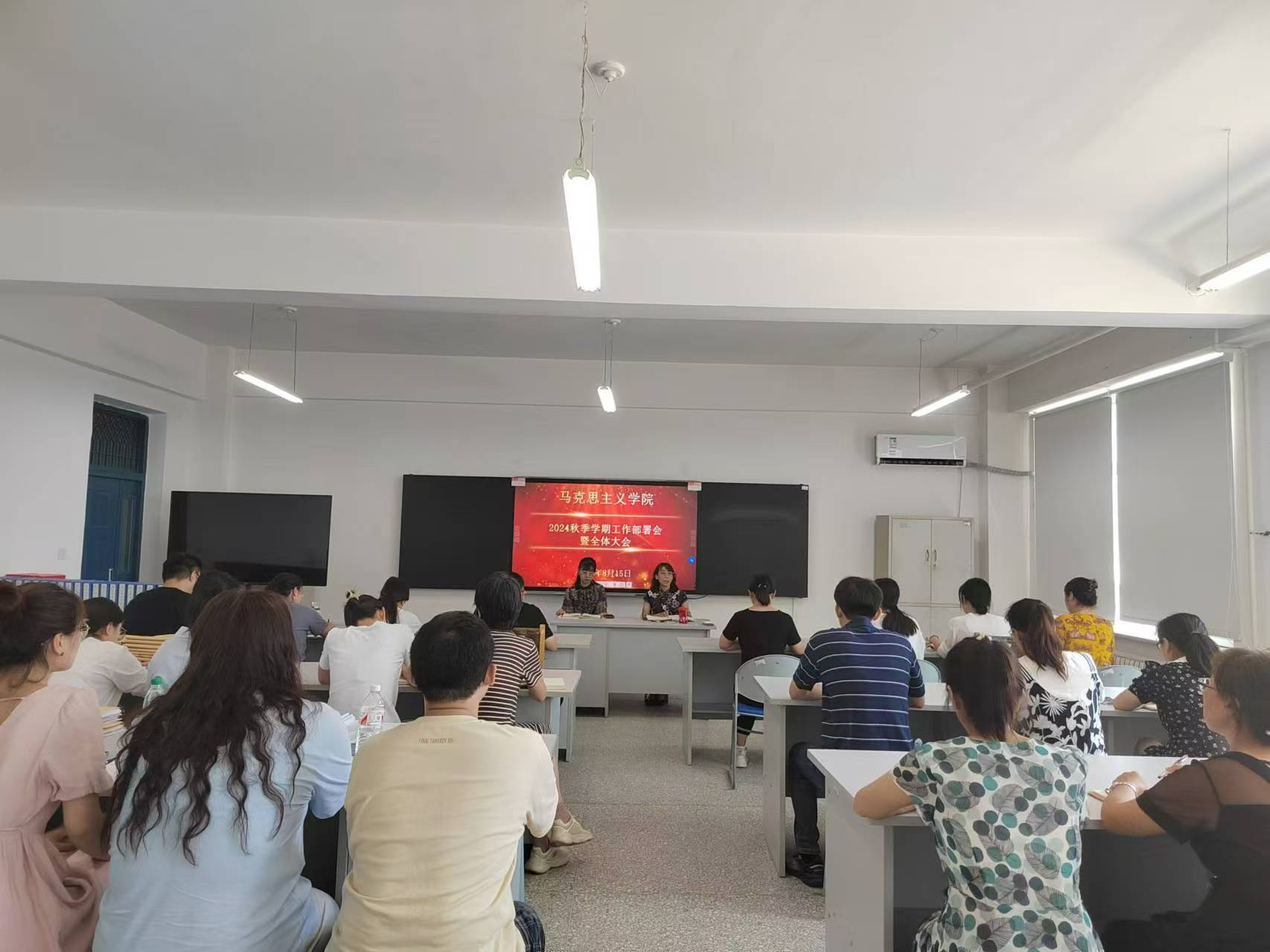 8月15日,pp电子官方网站在教四513教室召开了2024秋季学期工作部署会暨全体大会。会议围绕哈尔滨华德学院2024秋季学期总体部署和工作要点进行学习和讨论,由邵春凤院长主持,院长助理杨漫秋以及全体教师参加。
