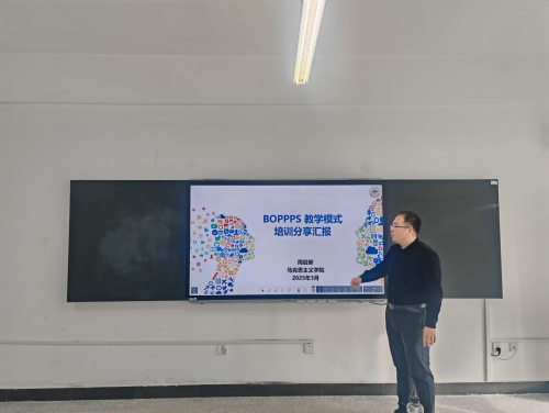 2025年3月26日,中国近现代史纲要教研室迎来了一场聚焦教学创新的专题培训。教研室共有6位教师参加了由周启新老师主讲的《BOPPPS教学模式培训分享汇报》。本次培训以“激活主动学习,重构课堂生态”为主题,通过理论阐释、互动研讨与实践设计相结合的方式,为教师们提供了一堂兼具前沿性与操作性的教学能力提升课。
