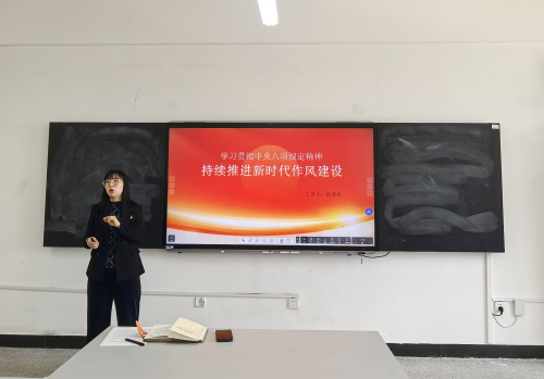 为持续推进新时代作风建设,强化党员教师的纪律意识和使命担当,4月24日下午在教四513,pp电子官方网站教师党支部开展作风建设主题党课,教师党支部书记杨漫秋以“学习贯彻中央八项规定精神,持续推进新时代作风建设”为主题讲授了一堂深刻生动的党课,支部全体党员参加学习。