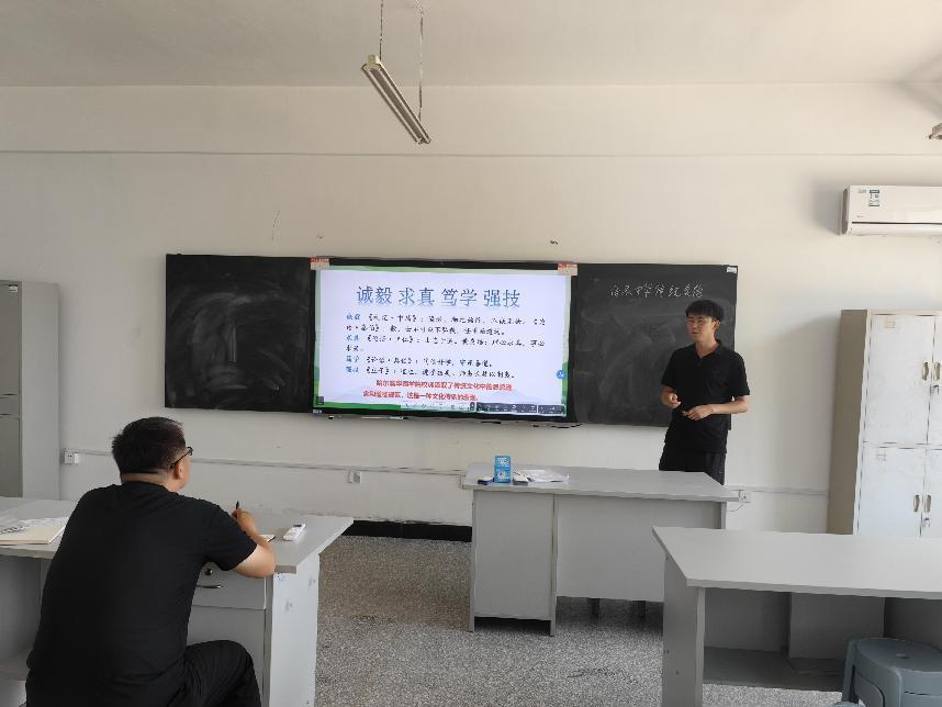 徐程、韩洋、张楠书、董一飞四位新教师围绕《思想道德与法治》课程的相关内容——“辩证对待人生矛盾”“崇尚精神是中华民族的优秀传统”“传承中华传统美德”“培养社会主义法治思维”等知识点,结合经典案例,深入浅出地讲解所授知识。试讲中他们重难点明确,课件内容丰富、表达清晰,价值导向正确。试讲结束后,听评课教师对每位试讲教师进行一一点评。在肯定教师教学基本功的同时,也进一步提出每个主题的重难点要精准定位、教学内容要精心设计、教学案例要精细选择,对学生情况要时时把握,讲课技巧要认真学习揣摩,跟有经验的教师多学习多听课等建议。评课小组教师的指导,对四位新教师的教学有很大提升和帮助。为帮助这些新教师尽快胜任教学任务,下学期开学初,教研室将再次进行试讲、磨课活动。