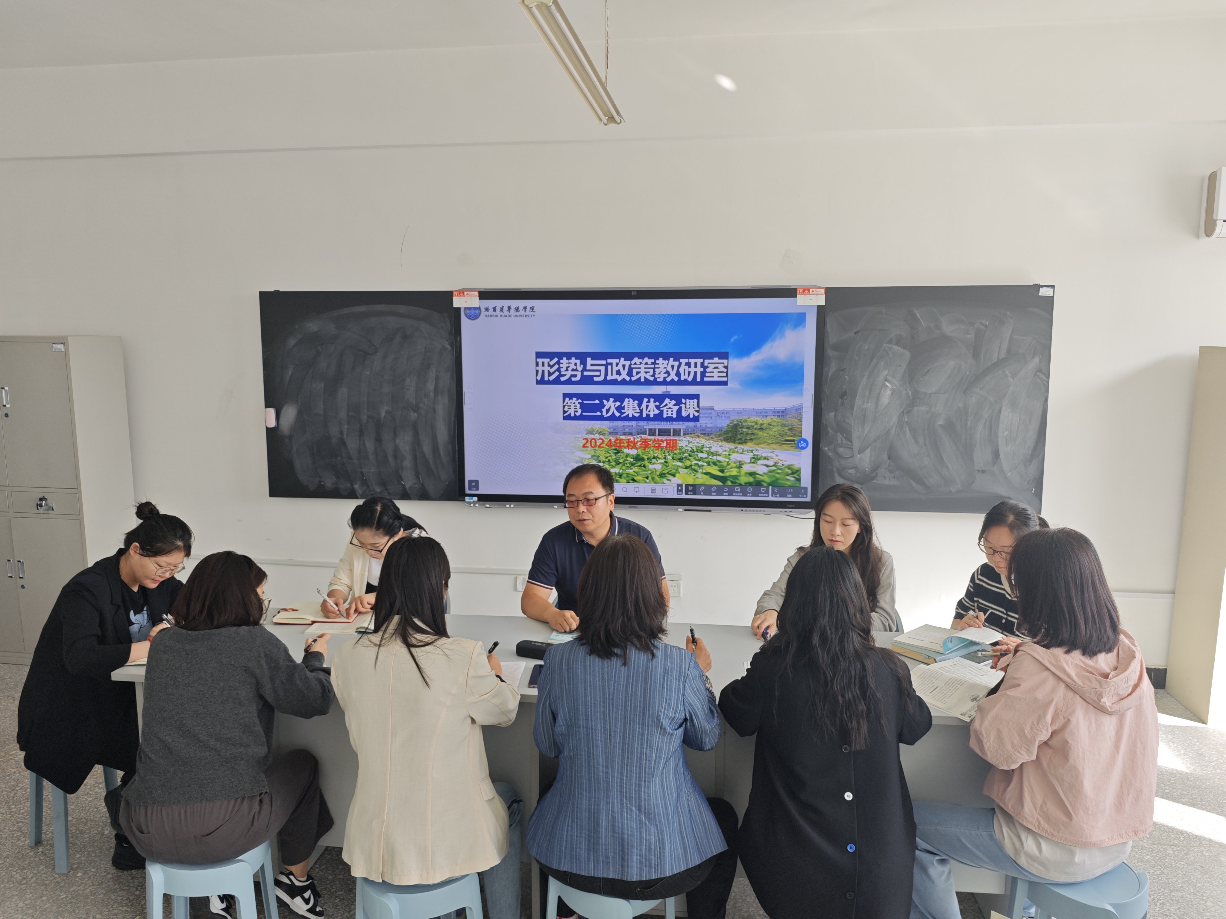 为充分发挥教师集体智慧,实现资源共享、优势互补,打造高效、精彩课堂,9月13日,形势与政策教研室在教四513教室开展了“形势与政策”课程教学团队的集体备课活动。形势与政策教研室副主任周启新主持了本次活动,全体授课教师参加。